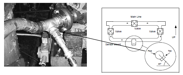 第1步,傳感器安裝圖:我們?yōu)槟涮讓S?/span>Tee型三通管焊接在客戶管道上,311探頭傳感器直接插入Tee型管道并用標配的卡箍固定。如下圖: